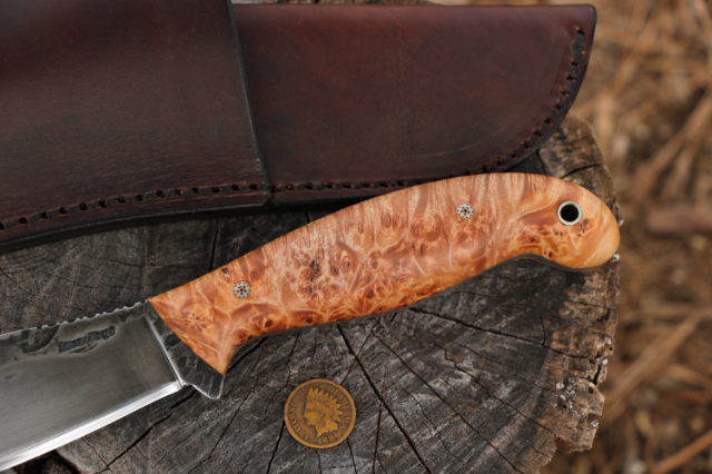CBL Custom Stabilized Maple Burl 5-Inch Blade Hammer Forged Jack Pine Special – Handle Detail Published January 23, 2026 at 640 × 426 in CBL Custom Stabilized Maple Burl 5-Inch Blade Hammer Forged Jack Pine Special – Handle Detail