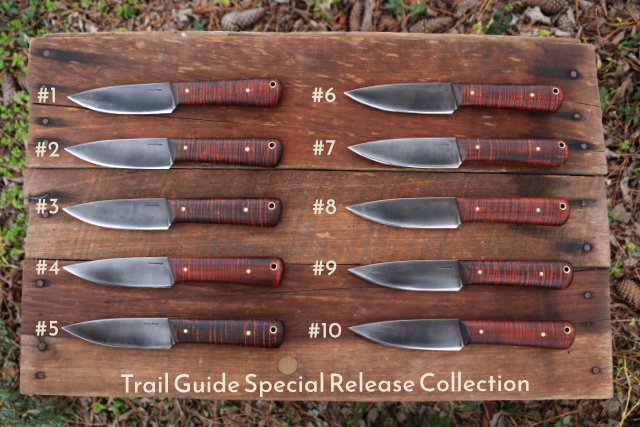 Trail Guide Knives Published November 29, 2024 at 640 × 427 in Specials Trail Guide Lucas Forge special release knife collection.