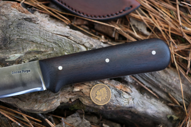 Vintage Straightback – Handle Published December 15, 2025 at 640 × 426 in Specials The Vintage Straightback knife design from Lucas Forge! This knife has a Kephart-style handle with a straight blade and fine tip.